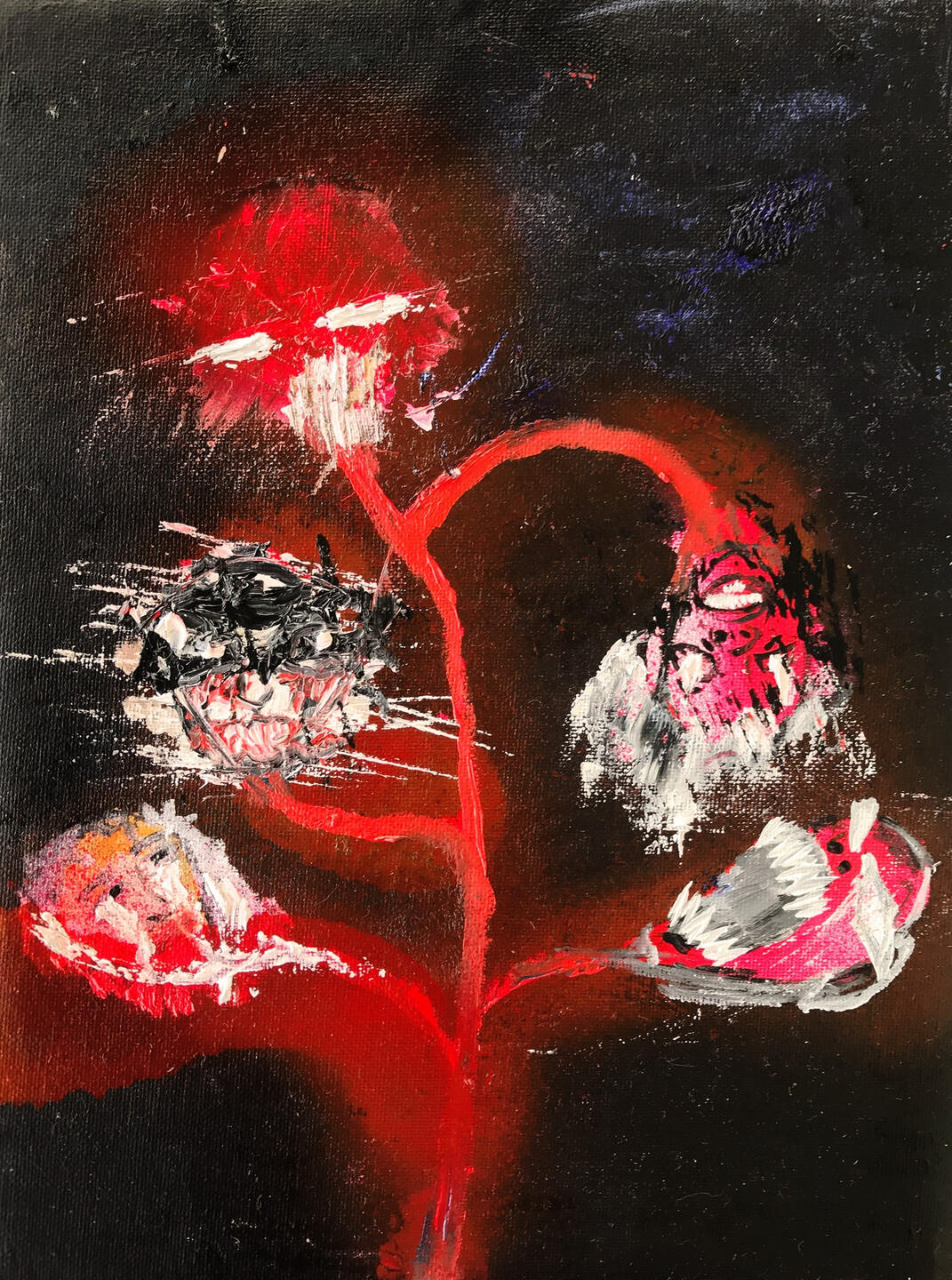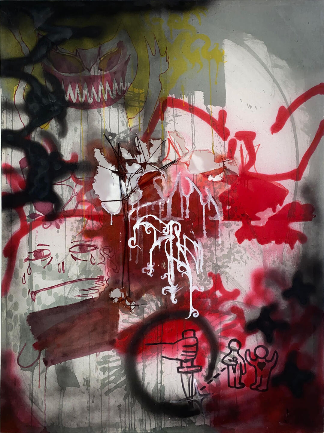 A self-taught artist from The Philippines. Her work is shaped by growing up around the raw immediacy of graffiti and the act of observation—of people, spaces, and the sharp curves of Filipino home gates. These early influences show up in her approach—tension, spontaneity, presence & disappearance.Working with both painting and mixed media, Christal focuses on dismantling and reconstructing, translating them into visual responses that are both instinctive and deliberate. Her process leans into impulse—letting texture, layering, and contrast guide the work.Expanding her visual language through video and media transformation, she continues to explore how fragmented experiences and environments can still create something cohesive. Her work doesn’t aim to explain, but instead opens up a space where viewers can sit with discomfort, ambiguity, and whatever feelings arise.
